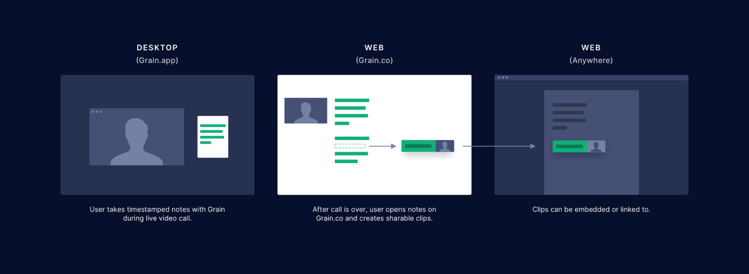 When I started this project, Grain had set their focus on improving a particular aspect of team communication. Namely, the process of capturing the content of a live video call and sharing that content with those who need it.