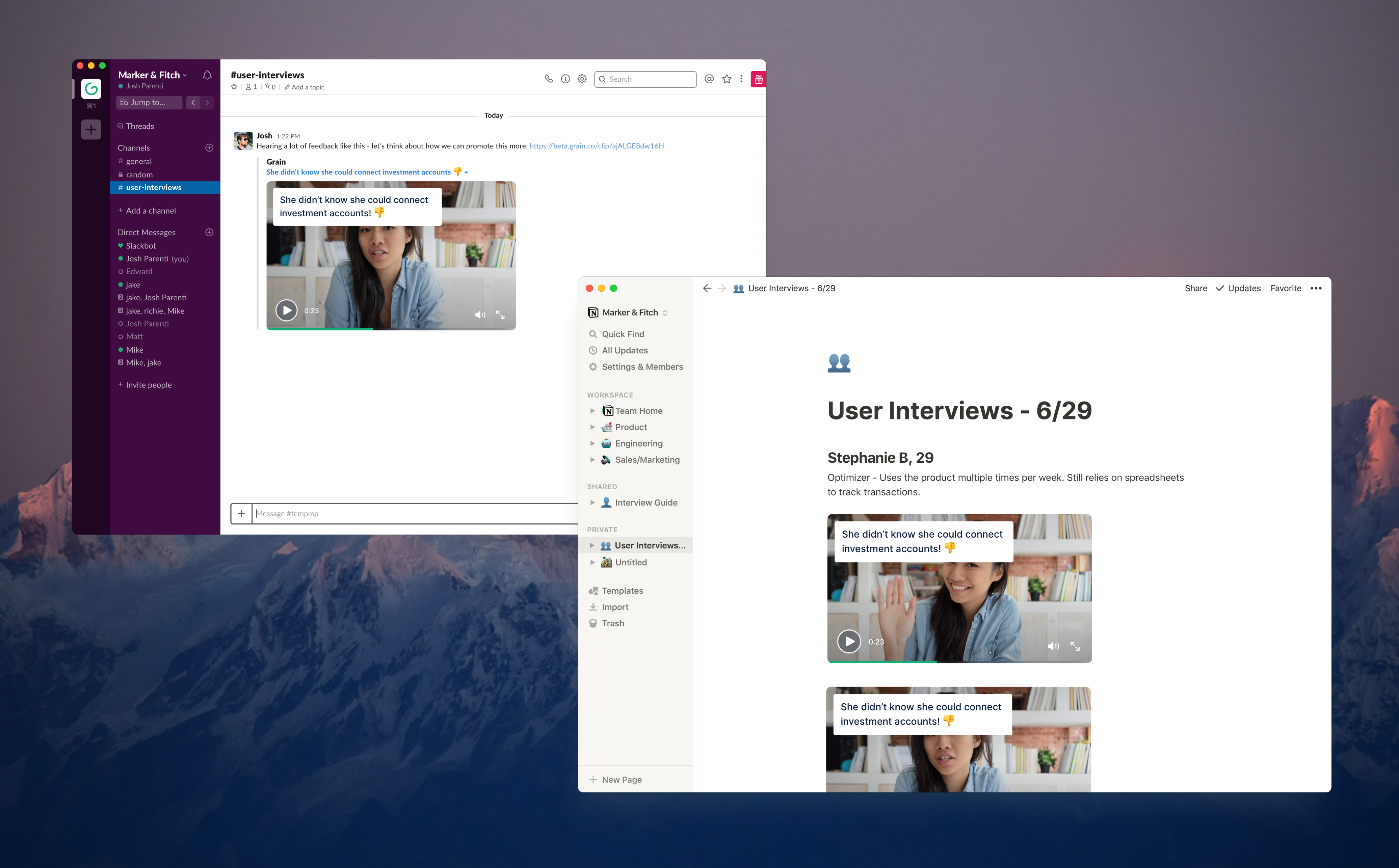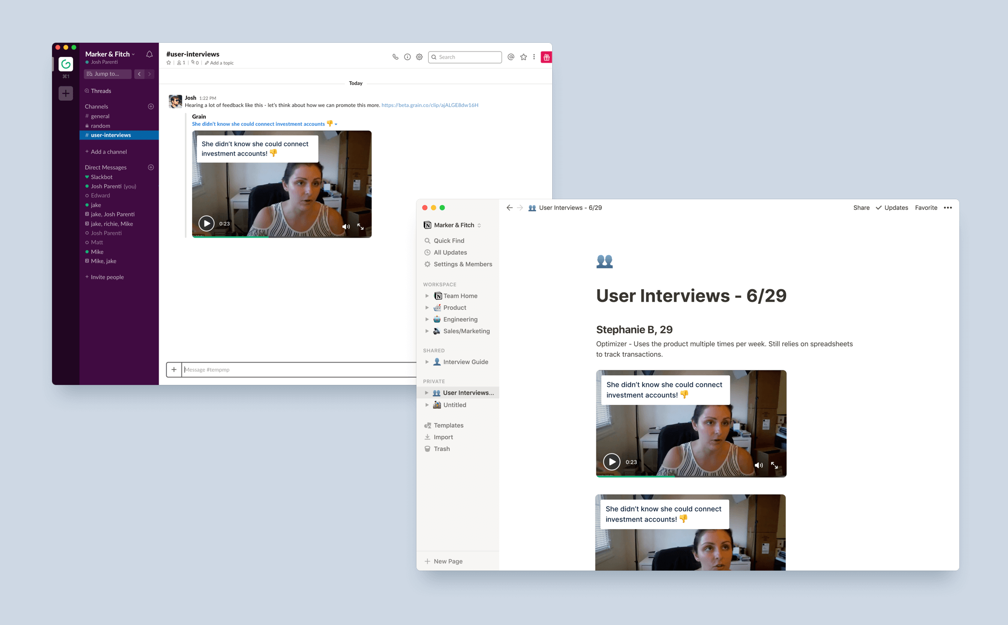 We conducted a series of interviews with people who fit our newly defined user type to further understand their workflows, and discover how Grain might be able to help.