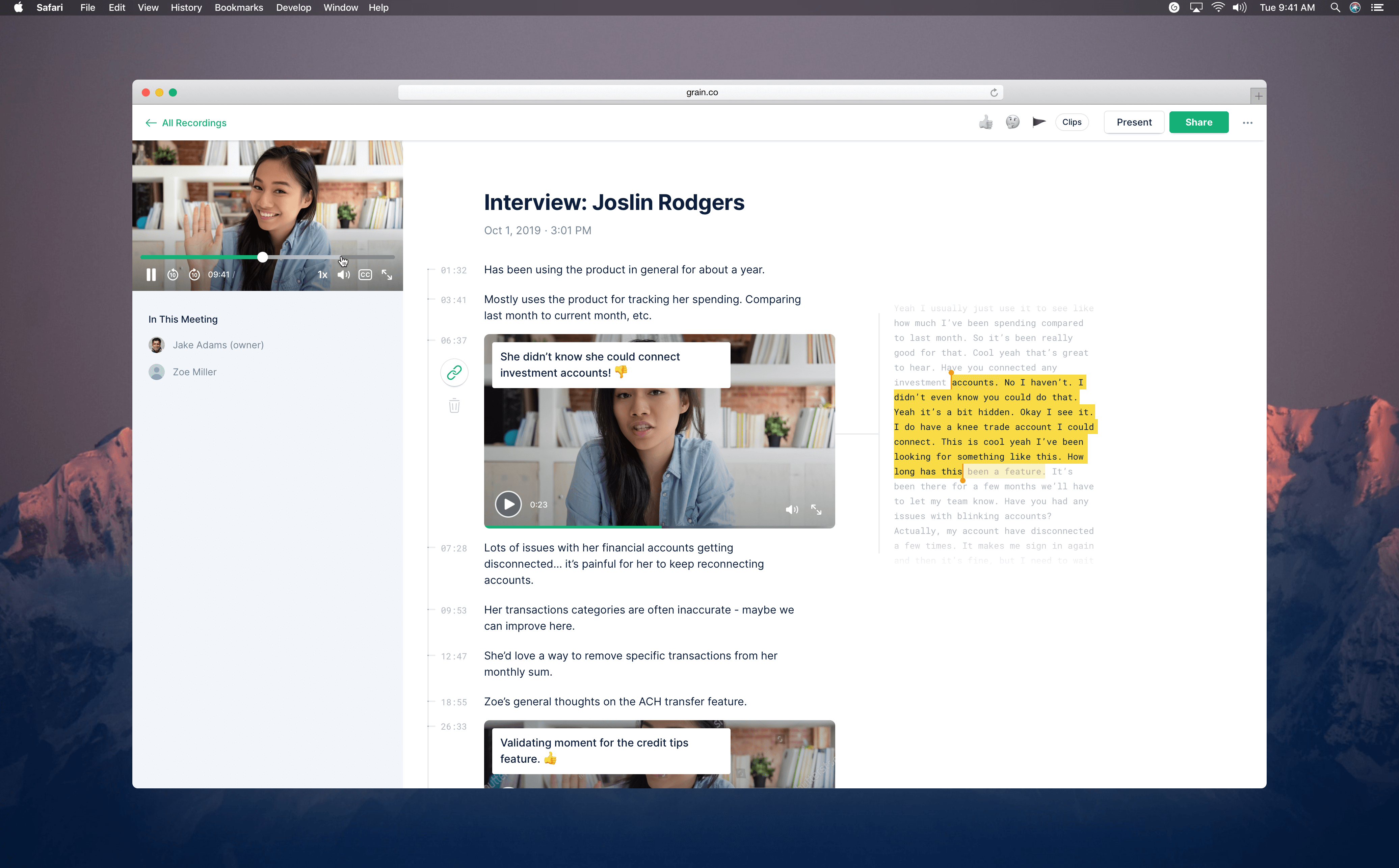 Grain is an app for macOS and web that lets you record and share the best parts of your Zoom video calls. Take notes during a live call, and instantly turn your notes into sharable clips and highlight reels.